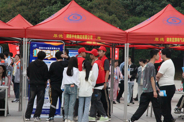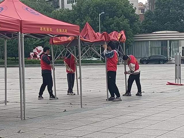 前期準(zhǔn)備階段志愿者們認(rèn)真做好招聘會會場的各項布置工作,搬桌椅、搭帳篷、擺旗幟等,志愿者們各司其職積極投入志愿服務(wù)。