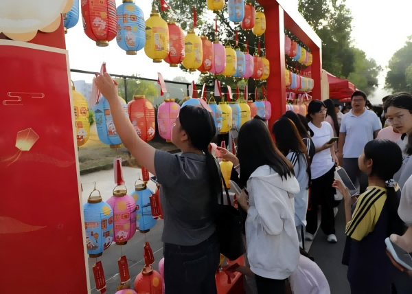 游園會在學生舞蹈社團的精彩才藝表演中拉開帷幕。活動現場精心設置了包括“詩詞飛花令”“詩詞大考驗”“民俗燈謎趣猜”“詩詞背誦與創作區”以及中秋趣味游戲等多個游戲互動區域。在燈籠高掛的民俗趣猜燈謎區,百余條融知識性與趣味性于一體的民俗、詩詞謎語吸引了大量師生駐足思索。趣味游戲區同樣人氣爆棚,源自古代的禮儀游戲“投壺”,成為了當天下午最火爆的互動點。