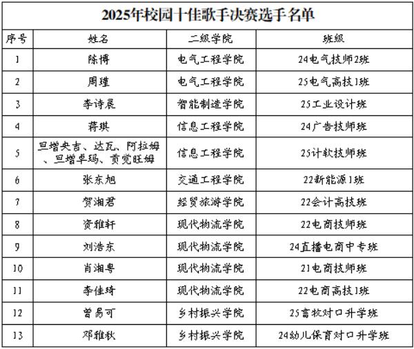 2025年衡陽技師學(xué)院“青春律動(dòng),聲耀未來”校園十佳歌手大賽復(fù)賽于11月13日下午在公共實(shí)訓(xùn)基地十一樓報(bào)告廳順利舉行。經(jīng)過各二級(jí)學(xué)院初賽層層選拔與推薦,共有46名優(yōu)秀選手站上復(fù)賽舞臺(tái),展現(xiàn)了學(xué)院學(xué)子積極向上的精神風(fēng)貌與多元融合的藝術(shù)才華,現(xiàn)場(chǎng)氣氛熱烈。