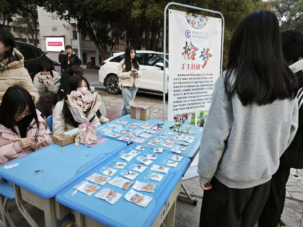 活動(dòng)現(xiàn)場,社員們精心制作的編織小飾品琳瑯滿目:精致小巧的編織掛飾、簡約別致的手鏈……一件件作品配色鮮艷、做工細(xì)膩,盡顯手工編織的獨(dú)特韻味。