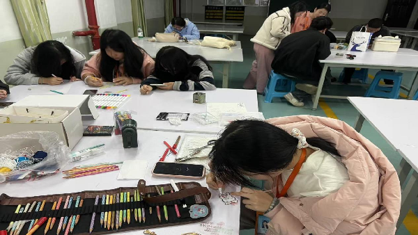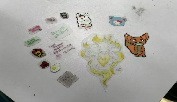 課程現(xiàn)場(chǎng)氛圍熱烈,學(xué)員們興致盎然。在導(dǎo)師的細(xì)致指導(dǎo)下,大家紛紛拿起畫(huà)筆勾勒創(chuàng)意圖案,用剪刀裁剪出心儀造型,再通過(guò)熱風(fēng)槍見(jiàn)證熱縮片“縮水”定型的奇妙過(guò)程。從簡(jiǎn)單的卡通形象到精致的花紋設(shè)計(jì),一張張普通的熱縮片在學(xué)員們的指尖逐漸變成鑰匙扣、掛件、書(shū)簽等精美作品。“第一次做熱縮片,看著自己畫(huà)的小圖案慢慢收縮變立體,真的太神奇了!”一位學(xué)員拿著剛完成的作品,滿臉成就感地說(shuō)道。