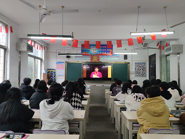 學生收看技能成才技能報國先進事跡視頻報告會現場