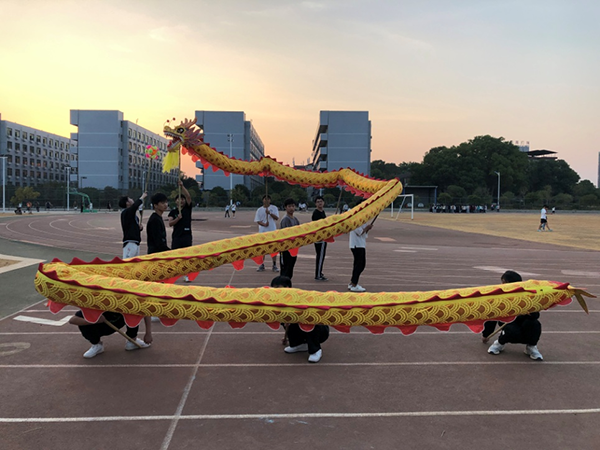 本網訊 近期,學院田徑場傳來陣陣鑼鼓聲,四條金燦燦的舞龍在教練陳祖昆的指導下,時而上下翻騰、時而左右翻飛,不斷變化出各種花樣,引得圍觀師生一陣拍手叫好。