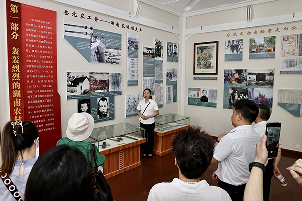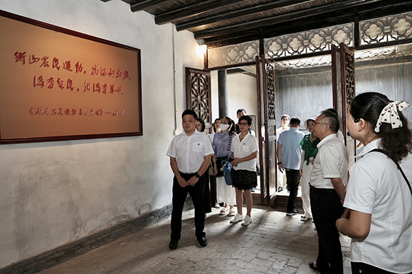大家來到湖南衡山農民運動舊址—康王廟,參觀湖南農民運動史實陳列館,講解員從“轟轟烈烈的湖南農村大革命、毛澤東考察湖南農民運動、如火如荼的衡山農民運動、湖南農民運動的新發展、踏上新的偉大征程”五個部分進行解說。“1926年12月,毛澤東親臨指導湖南第一次工農代表大會,1927年初實地考察了湖南五個縣的工農運動,發表了著名的《湖南農民運動考察報告》,指引湖南農民運動深入發展”。大家通過現場沉浸式學習,重溫那段激情燃燒的革命歲月和毛澤東“實踐出真知”之路,這對于深入開展調查研究具有重要的意義和學習啟示作用。