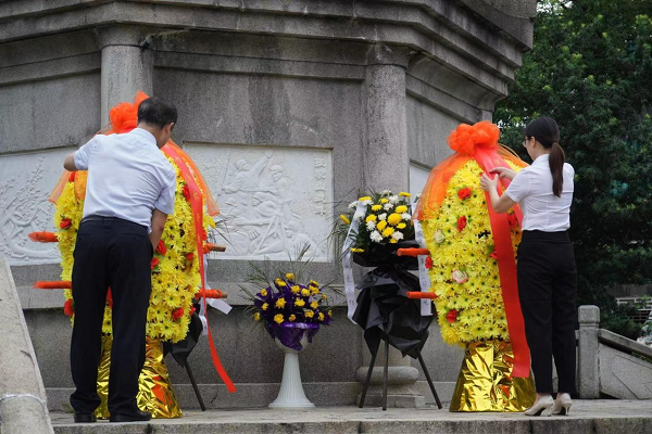 巍巍豐碑,英烈不朽,在岳屏山抗戰紀念城,全體師生排著整齊的隊伍,在烈士紀念碑前敬獻花籃,整理花籃緞帶并三鞠躬。大家懷著崇敬的心情緩步繞行一周,寄托對人民英雄的深切緬懷和崇高敬意。