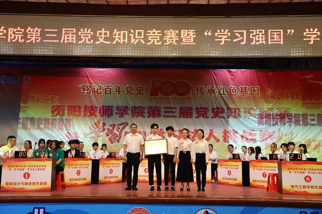 本網訊 為持續深化黨史學習教育,激發學生對黨史知識學習的熱情,營造學習黨史的濃厚氛圍,衡陽技師學院在全院范圍內開展了“銘記百年黨史,傳承紅色基因”為主題的黨史知識競賽暨“學習強國”學習達人挑戰賽。5月26日下午,黨史知識競賽總決賽在衡陽技師學院大禮堂舉行。