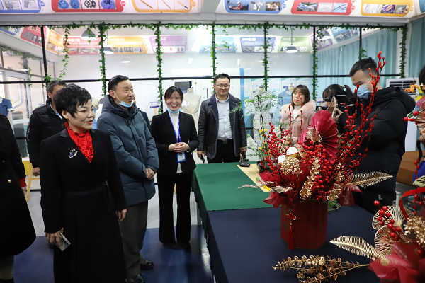 揭牌儀式后,與會領導一同參觀了學院“技能特色”作品成果展覽室、新時代文明實踐活動宣傳展板等,現場還召開了座談會,查閱了文明創建相關資料臺賬。