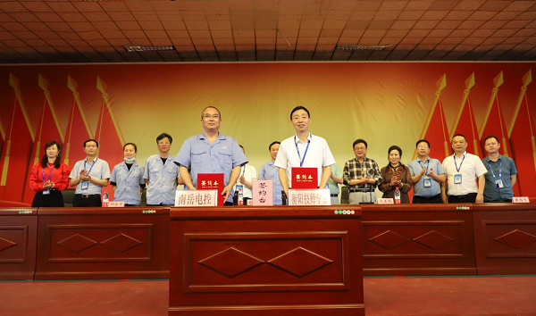 本網訊 4月28日,衡陽技師學院與南岳電控(衡陽)工業技術有限公司校企戰略合作簽約儀式在學院大禮堂舉行。學院黨委書記肖春林、院長邱家才與南岳電控(衡陽)工業技術有限公司黨委書記龍美彪、總經理譚新民出席簽約儀式,黨委委員、副院長廖與飛主持簽約儀式。