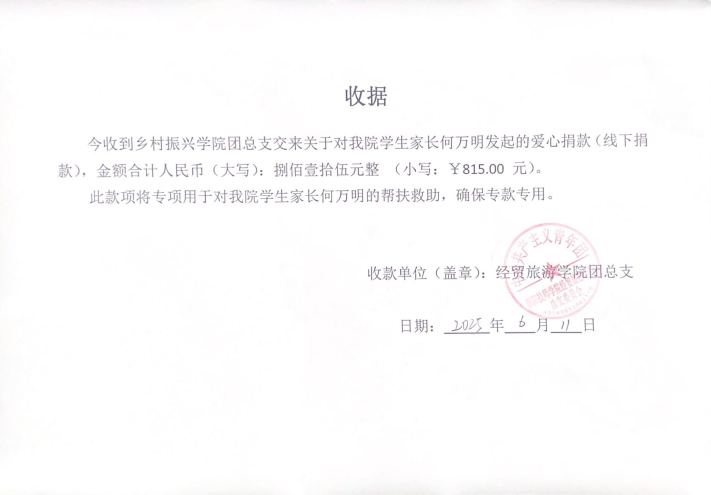應經貿旅游學院求助,我院團總支積極響應并在全院范圍內向師生發出倡議,捐款多少都是善舉。只有人人都獻出一點愛,世界將變成美好的人間。