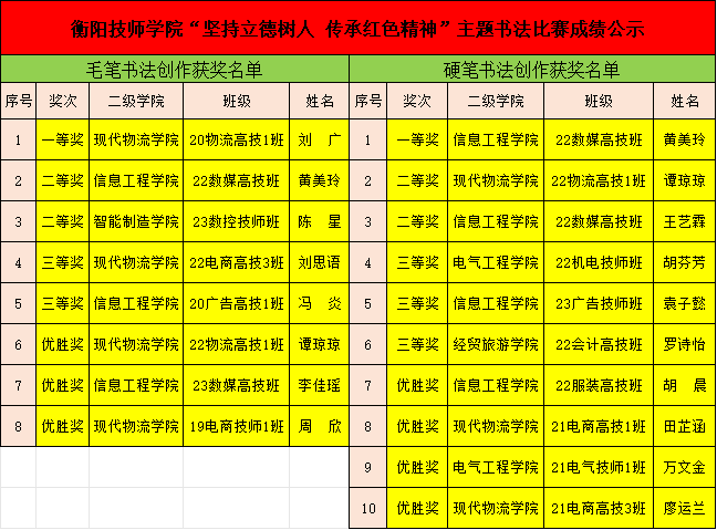 同學們全力投入,精心書寫,在有限的方格之間揮灑書寫之豪氣。經過激烈角逐,評委老師們從眾多優秀作品中評選出了各個獎項,獲獎名單如下:
