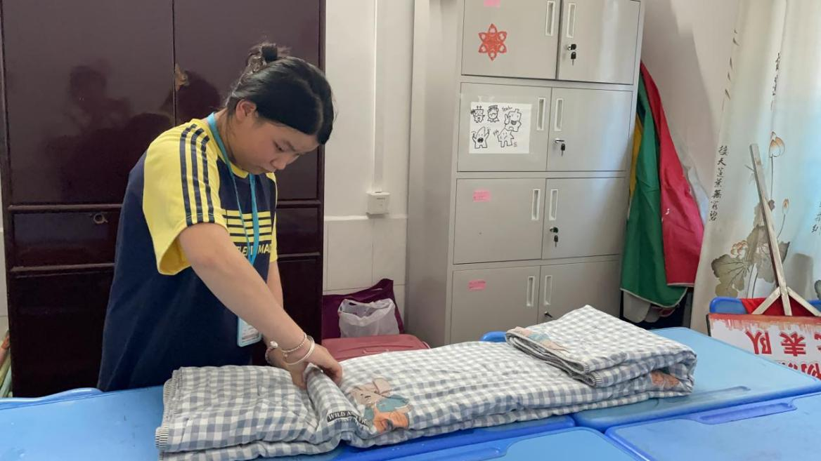 在輕松有趣的氛圍中,“情緒盲盒”“色彩心情,隨心表達”等活動同樣精彩紛呈。36名同學抽取情緒卡片,分享內心故事,在共鳴中卸下心理包袱;參與者用彩紙拼貼心情,將抽象情緒轉化為藝術創作,實現心靈的溫柔療愈。擊鼓傳花、你劃我猜等互動游戲,讓歡聲笑語驅散焦慮;狼人殺的燒腦推理,鍛煉思維的同時提升心理韌性;羽毛球賽場上的揮汗如雨,則讓壓力隨飛揚的球拍煙消云散。疊被子比賽參與人數最多,方寸之間,疊出心的秩序,參與者專注于疊被子實踐,內務整理這方面也是做到了手拿把掐,技術一流