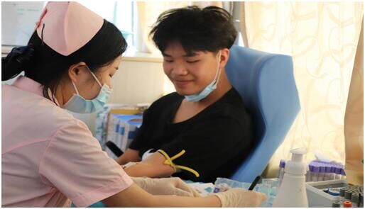 上午9時許,物流系65名師生積極響應(yīng)號召,依次進行信息登記、血液類型檢驗、靜脈采血等環(huán)節(jié),等待獻血期間,同學們緊張而興奮。