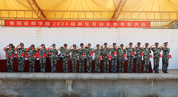 9月18日上午,衡陽技師學院2023年軍訓總結表彰大會在田徑運動場舉行。2023級新生身著迷彩服,以飽滿的熱情、昂揚的姿態匯報訓練成果。學院黨委副書記陳干甲出席并講話,大會由黨委委員、副院長肖芳主持。