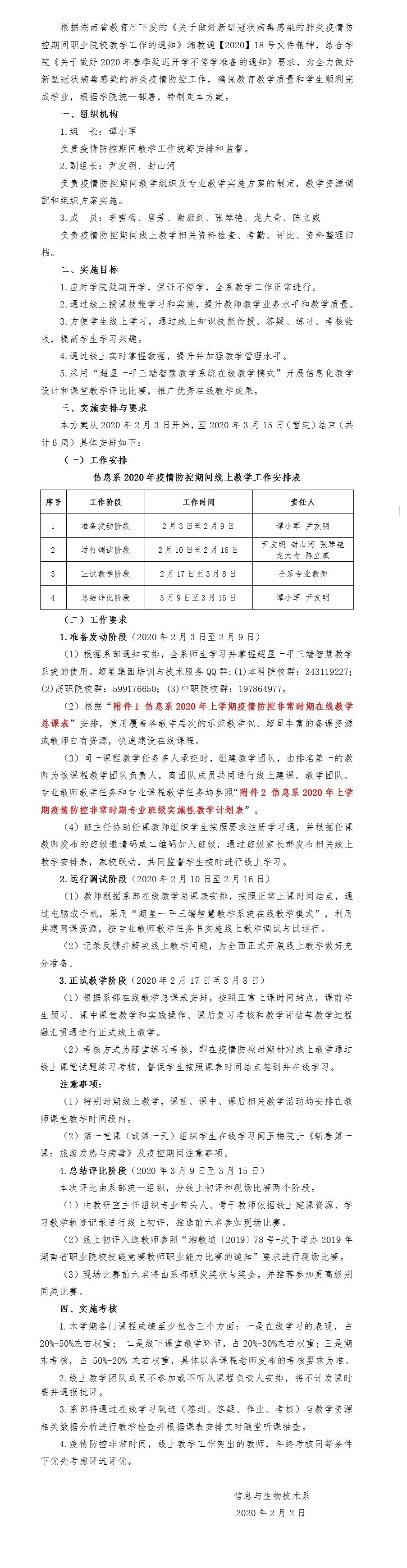 信息系2020年疫情防控期間教學(xué)組織及專業(yè)教學(xué)實(shí)施方案