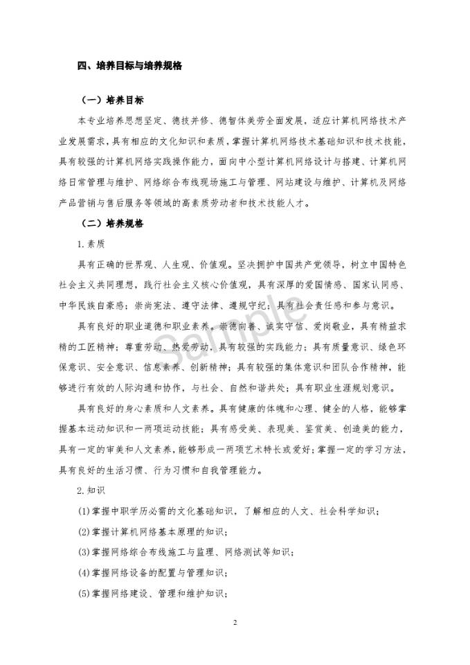 計算機網(wǎng)絡(luò)技術(shù)專業(yè)人才培養(yǎng)方案