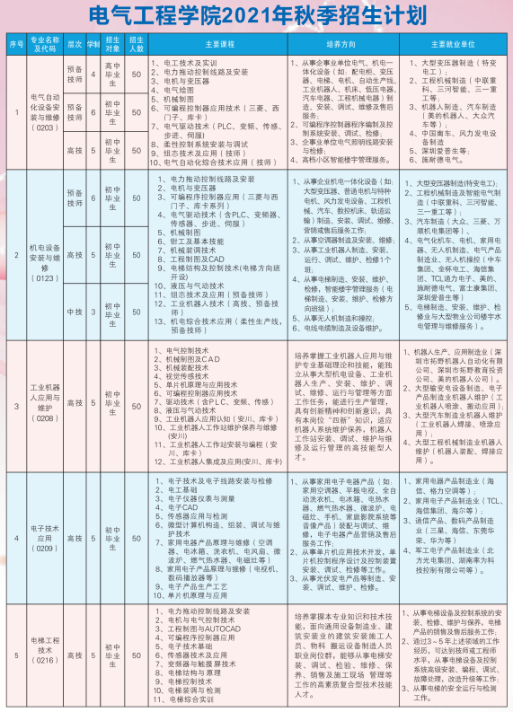衡陽技師學院2021年秋季電氣工程學院招生簡章