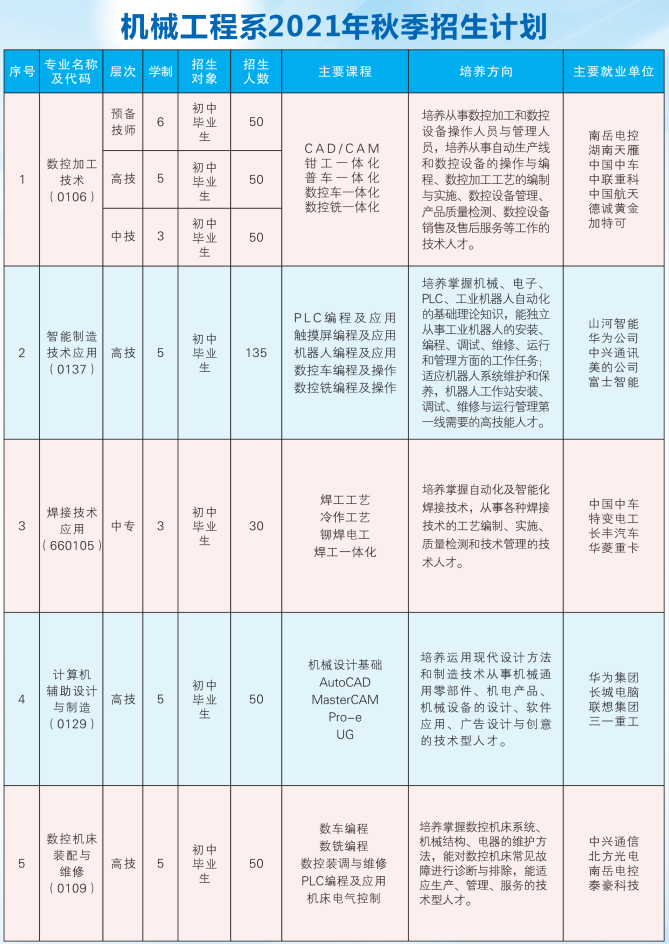 衡陽技師學(xué)院2021年秋季機(jī)械工程系招生簡章