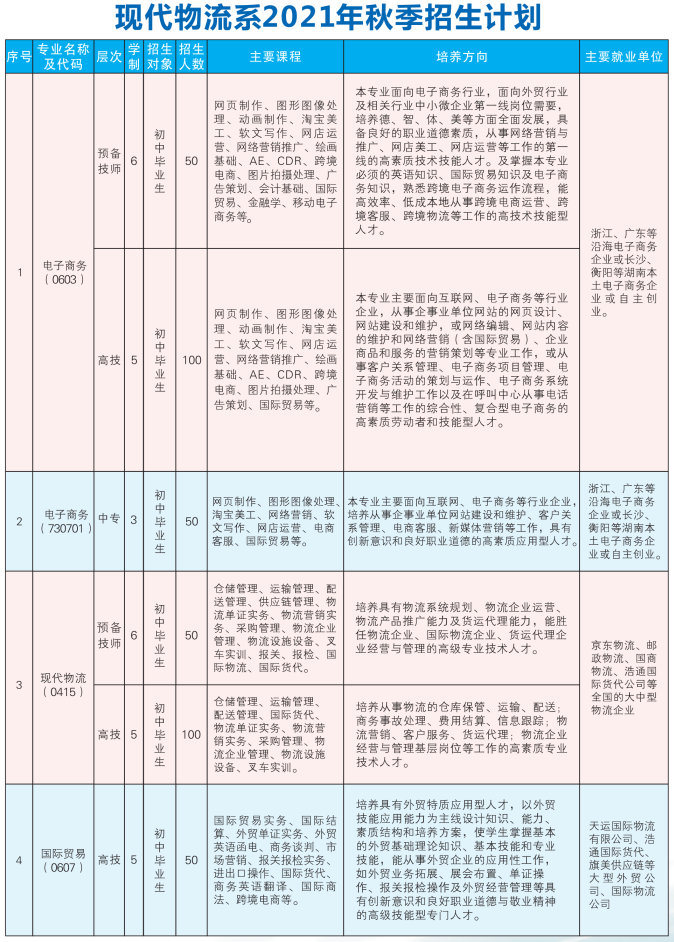 衡陽技師學院2021年秋季現代物流系招生簡章
