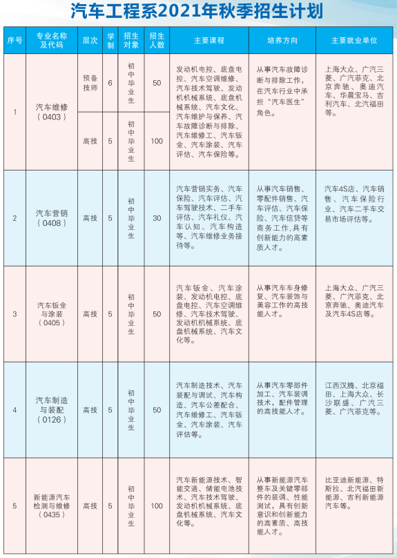衡陽技師學(xué)院2021年秋季汽車工程系招生簡章