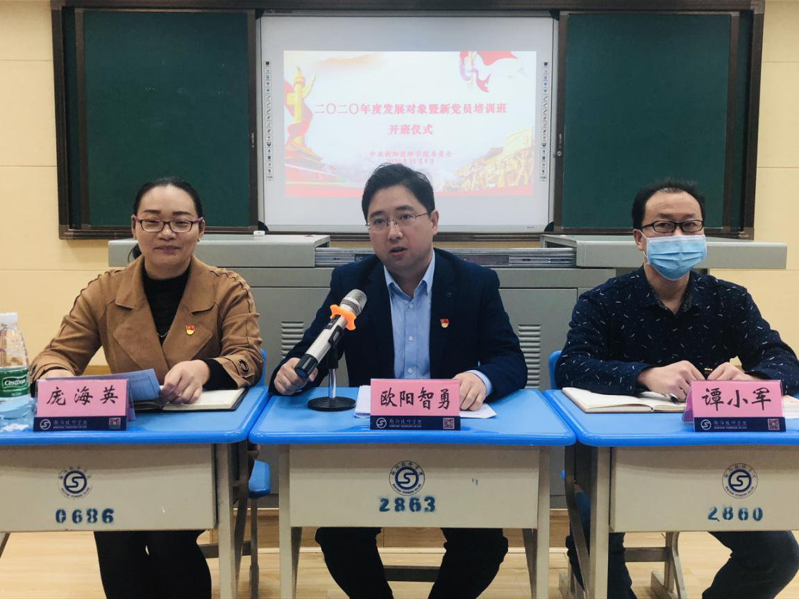 11月7日至9日,學院舉辦2020年度發展對象及新黨員培訓班,黨委委員、組織人事處處長歐陽智勇出席開班儀式并講授電影黨課,2020年度發展對象、預備黨員、新發展黨員參加培訓。
